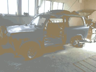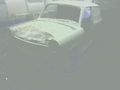 Auto rozebrane zostało całe, wymieniliśmy progi nadkola zdjęliśmy dach , usunęliśmy korozje zabezpieczyliśmy całego. aż w końcu czas na odświeżenie koloru. Adam podjął się malowania "TADKA". kolor jaśniejszy od oryginalnego bardziej się błyszczy. Dach okleiliśmy czarnym karbonem , tak samo zostały oklejone zderzaki . Przedni grill od 601, w garażu jeszcze czeka do niego "pochromowana eksa ze skrzydełkami".